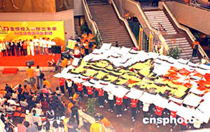 政務(wù)司司長曾蔭權(quán) 、政制事務(wù)局局長林瑞麟、民政事務(wù)局局長何志平、選舉管理委員會(huì)主席胡國興大法官及立法會(huì)議員、區(qū)議會(huì)正、副主席、選舉大使等出席典禮。  2004年香港立法會(huì)選舉開幕典禮17日在文化中心大堂舉行﹐政制事務(wù)局局長林瑞麟介紹選票。