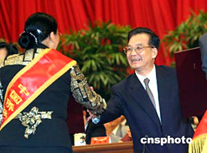胡錦濤等黨和國(guó)家領(lǐng)導(dǎo)人為受表彰的先進(jìn)集體和先進(jìn)個(gè)人的代表頒發(fā)了榮譽(yù)證書(shū)和獎(jiǎng)牌。