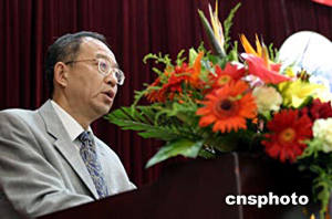 第四屆中文電化教學(xué)國(guó)際研討會(huì)二○○四年七月二十二日在北京語(yǔ)言大學(xué)召開(kāi)。本屆會(huì)議主題是“數(shù)字化對(duì)外漢語(yǔ)教學(xué)”,國(guó)外眾多著名漢學(xué)家與會(huì)研討,會(huì)上展示了數(shù)字化對(duì)外漢語(yǔ)教學(xué)的最新成果。圖為國(guó)務(wù)院僑辦副主任劉澤彭在大會(huì)開(kāi)幕式上講話。中新社記者:張勤