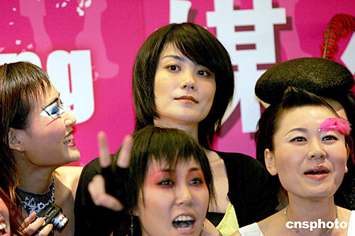 七月二十六日,剛剛獲得CCTV-MTV音樂盛典頒發(fā)的“亞洲地區(qū)最受歡迎杰出歌手獎”的王菲回到北京宣布,其個人演唱會將于八月二十八日在能容納六萬余人的工人體育場舉行。圖為扮演王菲各個時期造型的歌迷與王菲合影。作者:高遠(yuǎn)