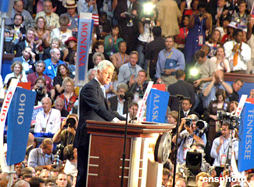 中新網(wǎng)7月26日電 據(jù)路透社報(bào)道,美國(guó)民主黨全國(guó)代表大會(huì)26日在波士頓開(kāi)幕,以前總統(tǒng)克林頓為首的民主黨老將們以全明星陣容亮相開(kāi)幕式,為該黨總統(tǒng)侯選人克里入主白宮站臺(tái)助選。除克林頓外,在開(kāi)幕式上發(fā)表講話(huà)的還包括前總統(tǒng)卡特、前副總統(tǒng)戈?duì)柤凹~約州參議員希拉里。