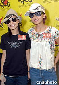 人氣組合Twins兩名成員鐘欣桐(阿嬌)、蔡卓妍(阿Sa)7月27日在香港出席商業(yè)電臺(tái)《叱咤樂壇》錄音訪問。作者:鄧慶樂