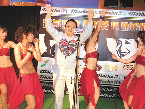 William接受訪問(wèn)后,便出發(fā)赴澳門,有近百傳媒到場(chǎng)采訪,也有二、三十位Fans包圍,但大部分是薛家燕的Fans。William即場(chǎng)演唱其首本名曲《SheBangs》,大會(huì)安排了幾個(gè)穿著超短裙的女仔為他伴舞。