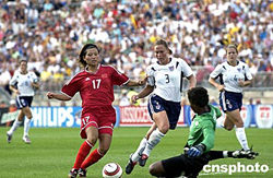 當(dāng)?shù)貢r間八月一日下午,中國國家女子足球隊在美國康州州立大學(xué)橄欖球場與美國女足進行友誼比賽,以一比三負于美國女足。這是中國女足奔赴雅典奧運會前的最后一場熱身賽,中國女足將于八月五日前往雅典。作者:陳鋼