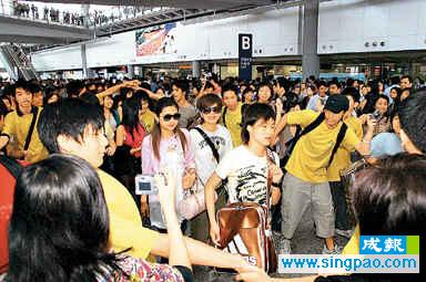 S.H.E的歌迷人數(shù)眾多,成功搶鏡。而其他歌手的Fans則以Energy較多,數(shù)目亦過百人,Energy四名成員分別步出機(jī)場(chǎng),由于每個(gè)成員均被Fans圍住,不停要求拍照及送禮物等,短短兩、三分鐘路程也要十分鐘才走到停車場(chǎng)。