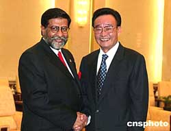 吳邦國(guó)說(shuō),中巴是傳統(tǒng)友好鄰邦,兩國(guó)人民之間的友好交往源遠(yuǎn)流長(zhǎng)。建交五十多年來(lái),無(wú)論國(guó)際風(fēng)云如何變幻,中巴關(guān)系不斷深化和發(fā)展,各方面合作全面展開。近年來(lái),中巴高層互訪頻繁,在國(guó)際事務(wù)中相互支持。中國(guó)感謝巴方在臺(tái)灣、西藏、人權(quán)等涉及中國(guó)領(lǐng)土、主權(quán)等重大問(wèn)題上所給予的一貫的堅(jiān)定支持。