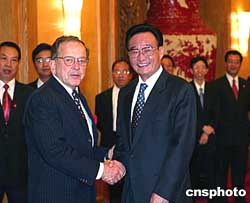 在談到香港問題時,吳邦國說,香港回歸七年多來,中國政府切實貫徹“一國兩制”、“港人治港”、高度自治的方針,嚴(yán)格按照香港基本法辦事。香港大局穩(wěn)定,香港的國際貿(mào)易、金融和航運中心地位進一步鞏固。今年四月,中國全國人大常委會對香港基本法附件有關(guān)規(guī)定的解釋,以及對二00七年特區(qū)行政長官、二00八年立法會的兩個產(chǎn)生辦法有關(guān)問題的決定,是完全符合憲法和香港基本法的,目的是維護香港的長期繁榮穩(wěn)定。希望美方履行在香港問題上的承諾,這符合包括美國在內(nèi)的國際社會的共同利益。