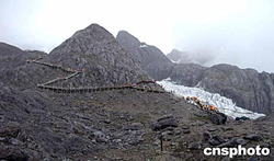 云南麗江的玉龍雪山景區(qū),頂峰的冰川公園風景秀麗景色怡人,8月游客絡繹不絕。作者:洪少葵