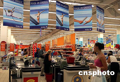 奧運(yùn)會(huì)即將開幕,雅典市的街頭巷尾和市場樓宇處處是與奧運(yùn)會(huì)有關(guān)的宣傳招貼廣告畫。中新社記者:任晨鳴