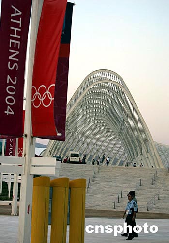 當(dāng)?shù)貢r間8月3日晚,雅典奧運(yùn)會體育中心在夕陽映照顯得別具一格。中新社記者:任晨鳴
