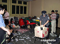 近日,北京昌平警方成功破獲一起賭博案,抓獲涉嫌參賭人員14名,當(dāng)場收繳賭博用撲克200副,鑒偽點(diǎn)鈔機(jī)一臺(tái),賭資(人民幣)5571元、籌碼28萬余元。該賭博場所設(shè)在一個(gè)三層小樓的一層,室內(nèi)面積約30平米,在房間內(nèi)擺著一張長條桌,桌上擺放著賭具,而在該房間的門口正上方懸掛著一個(gè)叫“得意樓”的大牌匾,他們是以“百家樂”的方式進(jìn)行賭博。目前,此案正在進(jìn)一步審理中。作者:甘洪斌