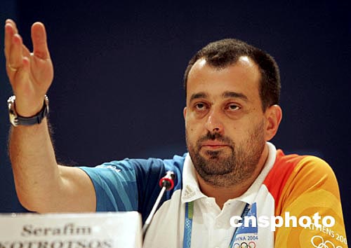 當?shù)貢r間8月3日中午,雅典奧運會新聞發(fā)言人Serafim Kotrotsos舉行新聞發(fā)布會,并就安全保衛(wèi)、門票銷售以及與北京奧組委的合作等問題回答記者提問。中新社記者:任晨鳴