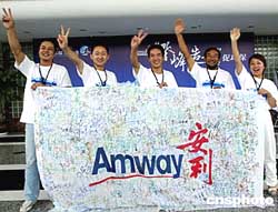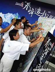國家環(huán)保局九月將舉行“登峰造極”清掃珠穆朗瑪峰大型環(huán);顒,安利(中國)日用品公司,八月四日在新疆安利營銷人員中舉行為中國環(huán)保做貢獻簽名活動。中新社記者:宋吉河
