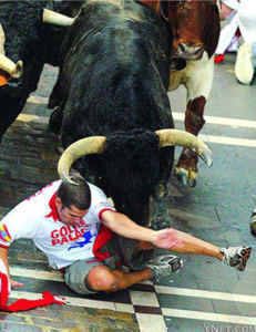 下午,上午在街頭狂奔的斗牛將與勇敢的斗牛士再次激戰(zhàn)。盡管每年的奔牛節(jié)活動上都會有人受傷甚至喪命,但西班牙男人仍然樂此不疲。