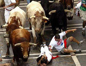 在西班牙的斗;顒又校云樟_納鎮(zhèn)舉辦的奔牛節(jié)是一個高潮。該項(xiàng)活動起始于1850年,在每年的7月6日至7月14日期間舉行,每天一大早,成群的斗牛從柵欄中被放出,而大街上數(shù)以千計(jì)穿著旁普羅納傳統(tǒng)服裝的年輕男人和觀光客則冒著被牛只沖撞和踩踏的危險(xiǎn)開始在牛群前拼命奔跑,要跑一公里長的路,一直跑到賽牛場才停止。