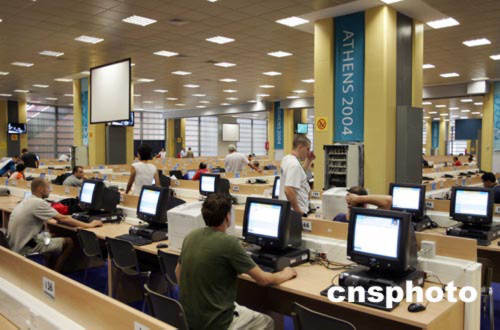 距離奧運(yùn)會(huì)開(kāi)幕尚有近一個(gè)星期,各國(guó)記者已趕赴雅典,當(dāng)?shù)貢r(shí)間八月八日,記者們進(jìn)入雅典奧運(yùn)會(huì)新聞中心開(kāi)始工作。中新社記者:毛建軍
