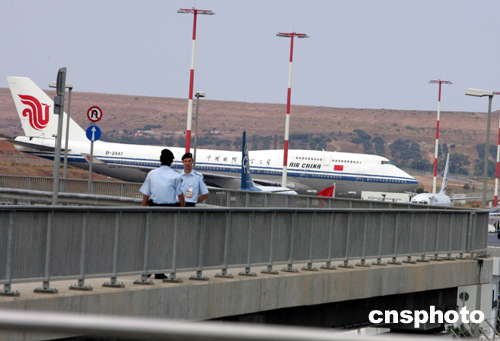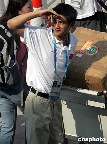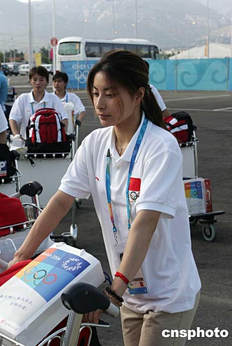 當(dāng)?shù)貢r(shí)間8月8日下午,運(yùn)載中國奧運(yùn)軍團(tuán)的中國國際航空公司波音747專機(jī)平安飛抵雅典機(jī)場,團(tuán)長袁偉民等受到組委會官員歡迎。