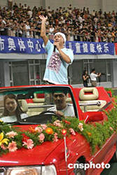 由中國兒童少年基金會主辦的“關愛兒童遠離傷害”中國明星足球隊對戰(zhàn)公益企業(yè)聯(lián)隊義賽八日晚在河北省秦皇島市舉行,來自中國香港演員張衛(wèi)健在比賽前的慈善晚會上獻歌助興。中新社記者:廖文靜
