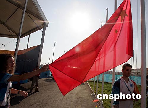 當(dāng)?shù)貢r(shí)間8月9日上午,中國奧運(yùn)代表團(tuán)在雅典奧運(yùn)村舉行隆重的升旗儀式。中新社記者:任晨鳴