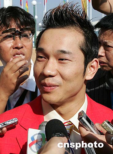 當(dāng)?shù)貢r間八月九日上午,參加雅典奧運會的中國男子舉重六十二公斤級名將樂茂盛向記者表示,他的時尚發(fā)型可以幫助他樹立堅強信念。中新社記者:毛建軍