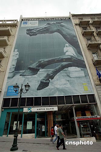 在希臘雅典市中心街頭,一幅數(shù)層樓高的宣傳畫(huà)以其獨(dú)具匠心的設(shè)計(jì)引人注目。中新社記者:王瑤