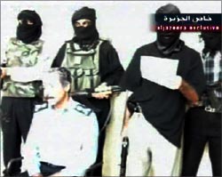 “半島”臺(tái)9日公布了一盤(pán)錄像帶,顯示一名伊拉克警官在巴格達(dá)遭武裝分子綁架。該警官曾任巴格達(dá)阿爾盧薩法地區(qū)警察分局局長(zhǎng)。