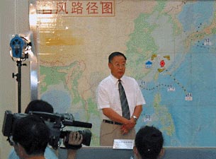 遵照總理要確保人民生命財產(chǎn)安全的指示,根據(jù)云娜臺風的特點及動向,中國氣象局于8月12日采取緊急行動,中國氣象局局長秦大河決定利用中央電視臺《新聞聯(lián)播》之后的電視天氣預報節(jié)目時段,親自向廣大民眾播報云娜臺風的登陸信息。