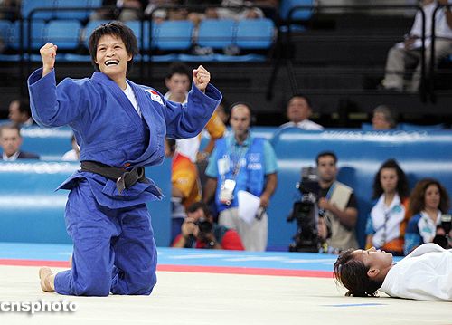 僅用了不到一分鐘的時間,身高一米五八的冼東妹就將二十三歲的日本選手橫澤由貴壓倒在地,并以“一本”戰(zhàn)勝對手,為中國隊添上第五金。