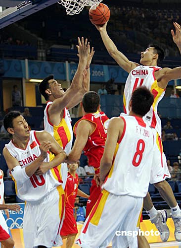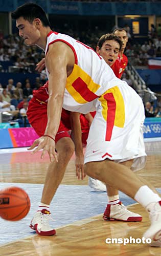 中新社雅典八月十五日電(記者 王祖敏)當?shù)貢r間今天下午,中國男籃在奧運會小組賽的首戰(zhàn)中,以五十八比八十三慘敗于西班牙隊,小巨人姚明上場二十七分鐘獲得十二分,在第四節(jié)因為犯規(guī)累計達到五次被罰下,而西班牙球星加索爾獲得全場最高的二十一分。