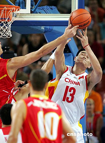 愈戰(zhàn)愈勇的西班牙隊在最后一節(jié)比賽中依然延續(xù)了瘋狂的進攻,將比分差距進一步擴大。中國隊換上巴特爾和姚明雙塔,但場上形勢仍無改觀,在比賽還剩下最后四分鐘時,加索爾又一次在姚明頭上扣籃,裁判判姚明阻擋犯規(guī),五次犯規(guī)的姚明無奈地走出場外。徹底失去希望的中國隊最終以五十八比八十三告負。