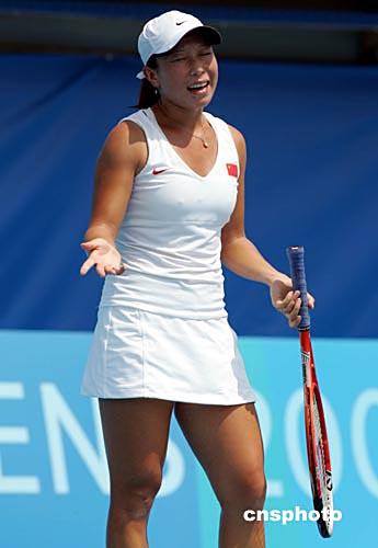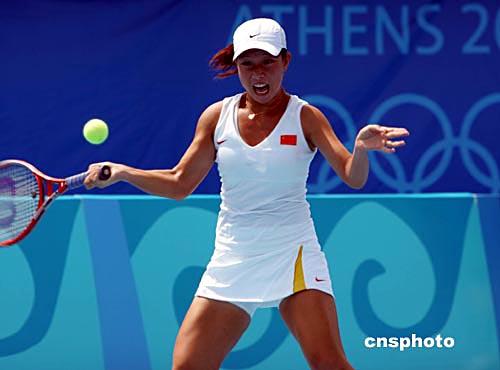 中國(guó)唯一參加雅典奧運(yùn)會(huì)女子網(wǎng)球單打比賽的鄭潔,當(dāng)?shù)貢r(shí)間8月15日首輪迎戰(zhàn)日本名將山杉愛,在大好局面下可惜以微弱比分失敗。中新社記者:任晨鳴