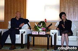 六十名臺(tái)灣地方知名人士訪問(wèn)重慶并參加“巴渝--三峽文化交流”活動(dòng),八月十六日上午重慶市委副書記邢元敏、重慶市副市長(zhǎng)吳家農(nóng)等會(huì)見(jiàn)其中部分人士。圖為邢元敏與臺(tái)灣知名人士許信良親切交談。作者:郭晉嘉