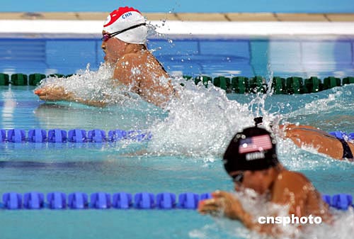 當地時間8月16日,中國選手羅雪娟以1分06秒64的成績戰(zhàn)勝了澳大利亞選手瓊斯,打破奧運會紀錄,奪得雅典奧運會女子100米蛙泳金牌,再次衛(wèi)冕了世界女蛙王的頭銜。這是中國代表團在本屆奧運會上獲得的第八塊金牌。 中新社記者:任晨鳴