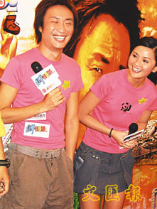 前晚首映禮上,Ronald的父親鄭東漢來捧場,鍾欣桐也來撐好拍檔阿Sa場,另外鐘鎮(zhèn)濤帶兒子女兒看戲。而男女主角著同款粉紅色T恤以情侶裝姿態(tài)出現,并當場玩游戲,一個被蒙眼作箭靶,另一方用飛鏢對準目標,之后對調身份,Ronald跟阿Sa玩得相當投入。