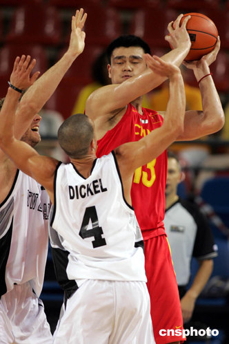 最后一節(jié)姚明體能下降,中國隊(duì)未能依靠整體的力量完全抑制對(duì)手。新西蘭一度頑強(qiáng)地將差距縮小到四分。最后時(shí)刻郭士強(qiáng)六罰五中粉碎了對(duì)方翻盤的希望。