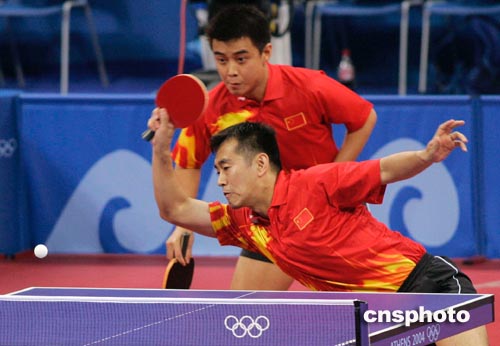中新社雅典八月十八日電被寄以厚望的中國(guó)乒乓球男雙選手王皓/孔令輝出人意料地在奧運(yùn)會(huì)八分之一決賽中敗在瑞典老將瓦爾德內(nèi)爾、佩爾森拍下。坐在看臺(tái)上觀看這場(chǎng)比賽的中國(guó)乒乓球隊(duì)總教練蔡振華賽后發(fā)出感嘆:老瓦打得太好了。