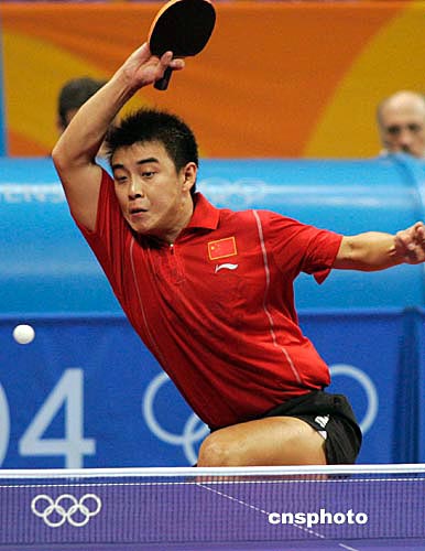 當?shù)貢r間18日晚,中國乒乓球男單選手王皓戰(zhàn)勝對手,晉級8強。中新社記者:張煒