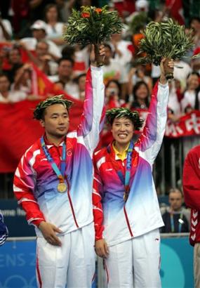 中新社雅典八月十九日電 中國雅典奧運羽毛球隊今天一掃前兩日男單、男雙盡墨的陰霾。繼張寧摘取女單桂冠后,悉尼奧運冠軍張軍/高崚又衛(wèi)冕成功。在剛剛結(jié)束的混雙決賽中他們以二比一的總比分戰(zhàn)勝了來自英國的羅伯遜/埃姆,三局比分分別為十五比一、十二比十五和十五比十二。