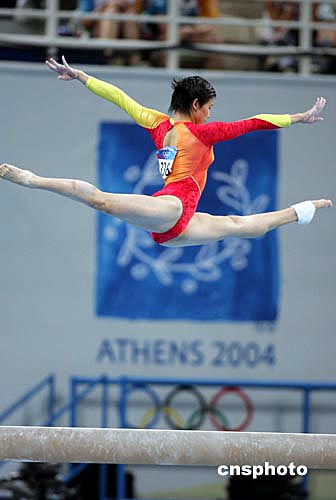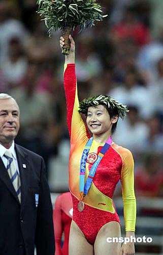 當(dāng)?shù)貢r間八月十九日晚,中國體操選手張楠獲得雅典奧運女子體操全能銅牌。中新社記者:毛建軍