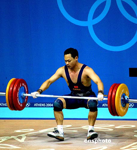 在雅典當(dāng)?shù)貢r(shí)間19日晚舉行的奧運(yùn)男子舉重77公斤級(jí)的決賽中,賽前被人們寄予厚望的奧運(yùn)衛(wèi)冕冠軍占旭剛?cè)巫ヅe均告失利,在比賽還沒過半的時(shí)候就提前出局。中新社記者:王瑤
