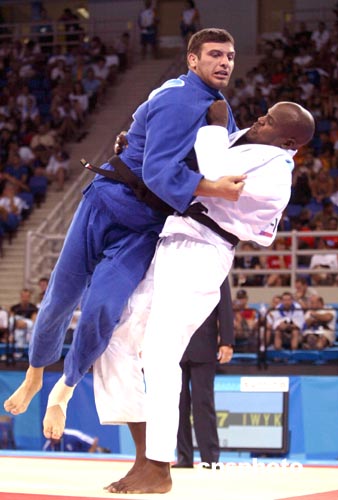 當(dāng)?shù)貢r(shí)間8月19日,希臘選手Vasileios與古巴選手Oreidis在男子100公斤級柔道賽場上一爭高下。