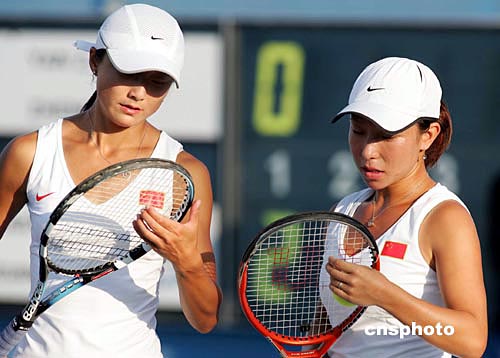 當?shù)貢r間八月十九日晚,在雅典奧運網(wǎng)球女雙爭奪四強席位的比賽中,中國姑娘鄭潔、晏紫組合最終以兩個一比六不敵西班牙的帕斯奎爾、馬丁內(nèi)茲組合,無緣四強。中新社記者:毛建軍