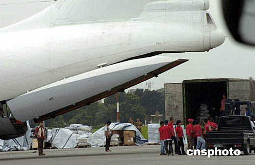 受到印度洋海嘯災(zāi)難影響的印度尼西亞班達(dá)亞齊災(zāi)民撤離到棉蘭市,世界各地的賑災(zāi)物品陸續(xù)運(yùn)抵棉蘭市機(jī)場(chǎng),澳洲軍人在棉蘭機(jī)場(chǎng)參加救援工作。作者:洪少葵