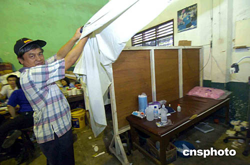 1月6日,印度尼西亞棉蘭市華族收容所的義工向記者展示簡(jiǎn)陋的衛(wèi)生設(shè)施,華族義工醫(yī)生就是在此為受海嘯災(zāi)難受傷的災(zāi)民贈(zèng)醫(yī)施藥,他們希望盡快收到救援物品以解燃眉之急。作者:洪少葵