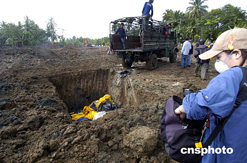 圖:班達亞齊義工協(xié)助埋葬死難者尸體