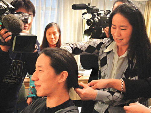 林鳳嬌一貫主張男生要剪短頭發(fā),因此早年一頭長發(fā)的成龍換成了一頭短發(fā),雖然“龍大哥”多次在公開場合表示自己喜歡長發(fā),不過這個(gè)宿愿只能留給兒子房祖名了。但是林鳳嬌依然不依不饒,去年發(fā)了專輯又拍了電影的“龍子”成績不俗,不過一頭長發(fā)辮依然讓林鳳嬌有點(diǎn)“不爽”,所以敦促房祖名剪短發(fā)。而前往泰國訪問了海嘯災(zāi)區(qū)的房祖名目睹生死慘狀,也決心換一個(gè)新形象給歌迷多一些鼓勵,以后無論出現(xiàn)在專輯封面還是時(shí)裝電影中,“龍子”都將以短發(fā)示人。雖然決心換形象,不過畢竟有些舍不得多年留下的頭發(fā),林鳳嬌也把剪下的頭發(fā)保存,算是兒子成長的一個(gè)紀(jì)念。對自己的新形象,房祖名覺得很不錯,清爽簡單也蠻帥氣,更重要的是能給小歌迷更健康的印象。(記者 劉嵩)