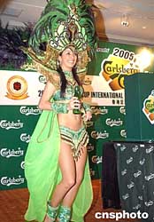 圖為森巴女郎為記者會助興。作者:譚達明