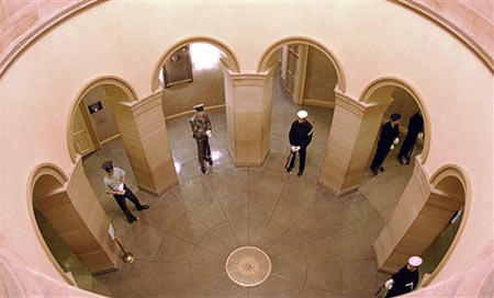美國總統(tǒng)布什的連任就職典禮定于本月20日舉行。成功擊敗民主黨候選人克里的布什即將再次舉起右手,重復4年前的誓言。為保證儀式的順利進行,有關部門9日在國會大廈舉行了一次預演。