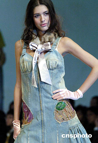 1月19日,香港會展中心舉行的“香港時裝節(jié)秋冬系列2005”上,模特在T型舞臺演繹“獨家時裝表演”專場的設(shè)計師最新服飾系列。作者:洪少葵