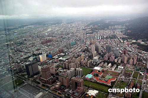 圖為站在三百八十二米高的觀景臺(tái)看到臺(tái)北的景色。